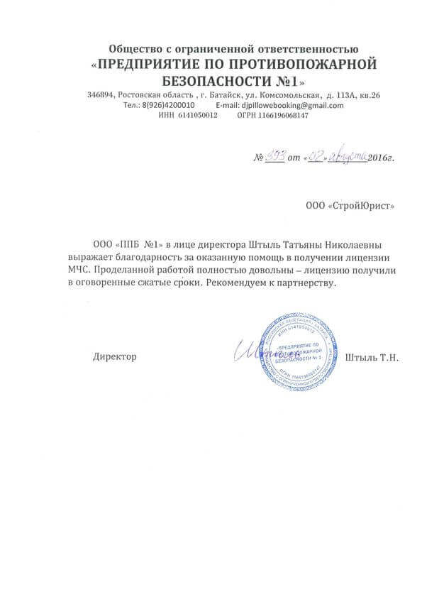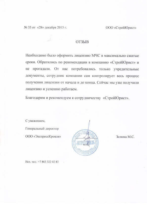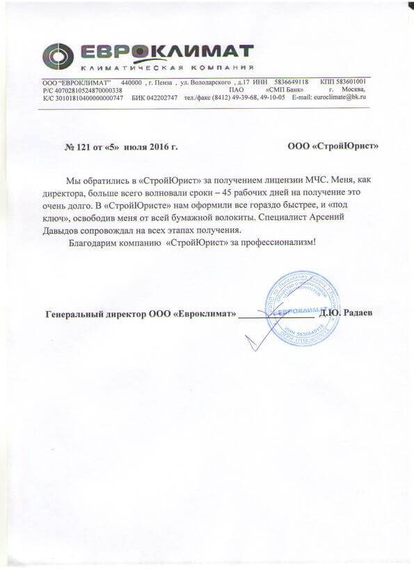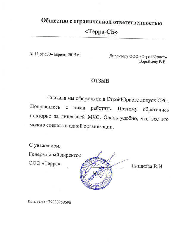 Отзывы клиентов "СтройЮрист" по лицензированию МЧС в Салехарде