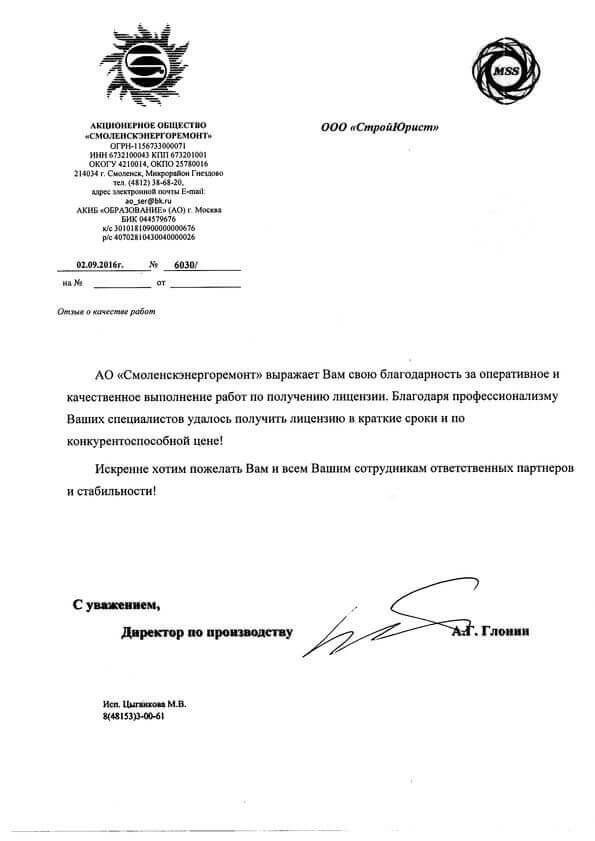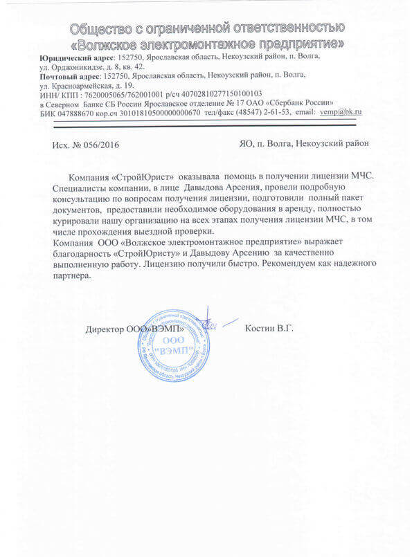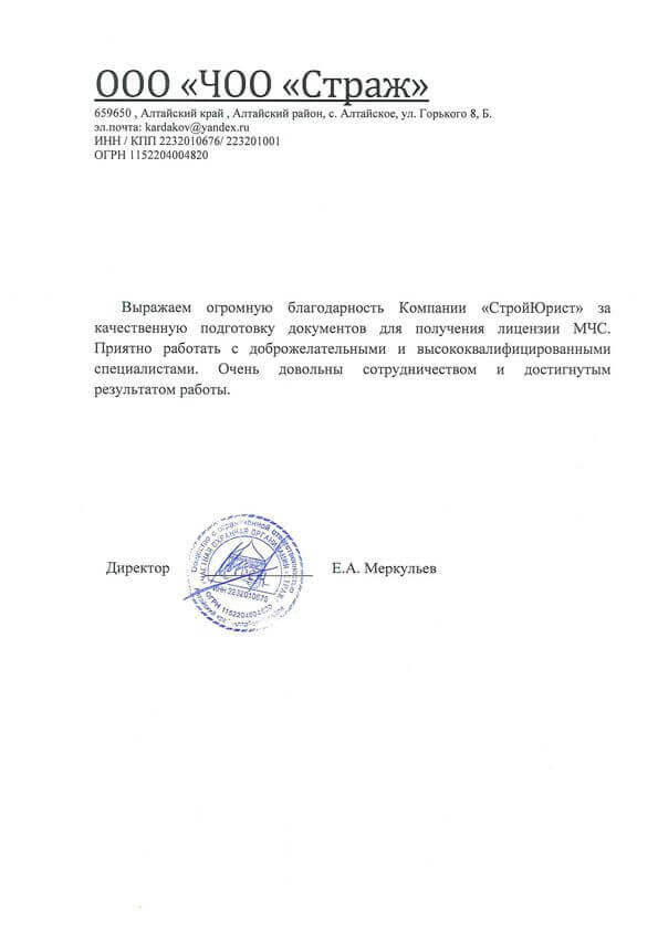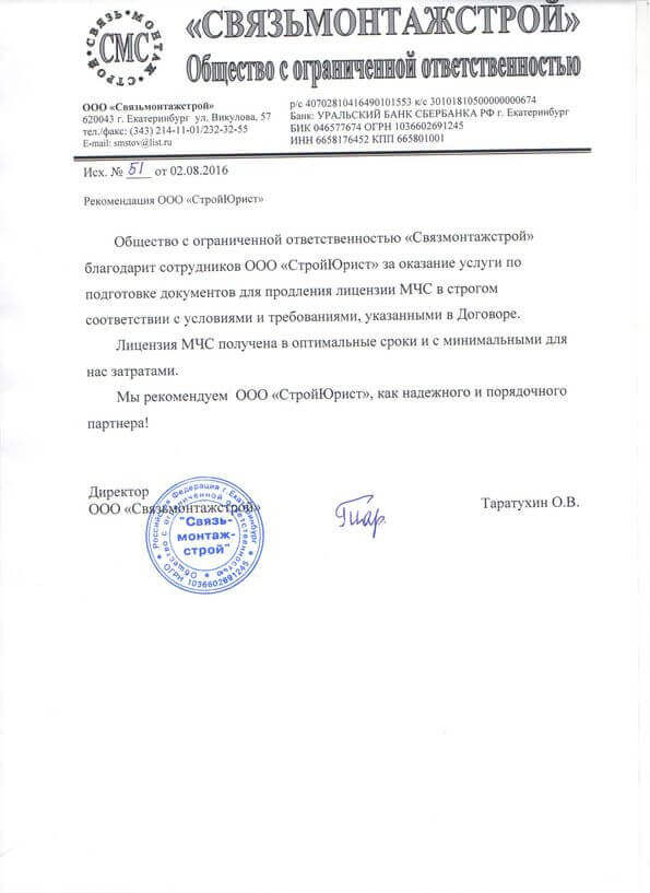Отзывы клиентов "СтройЮрист" по лицензированию МЧС в Салехарде