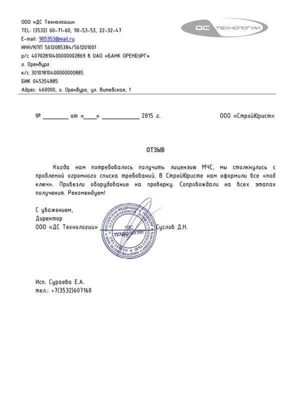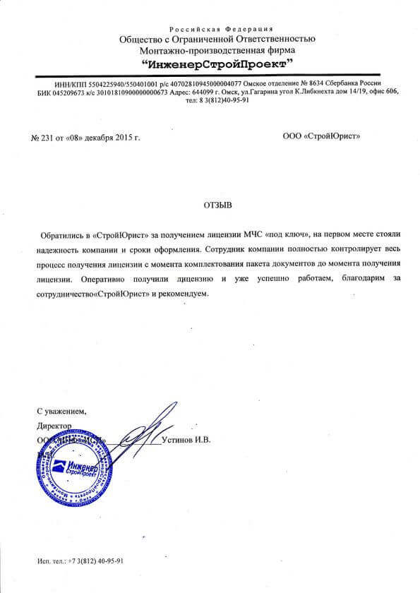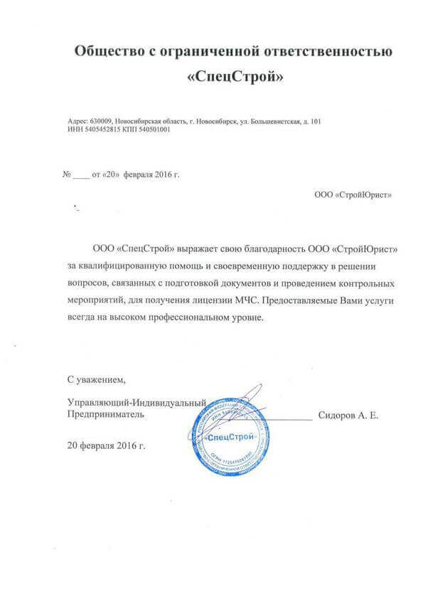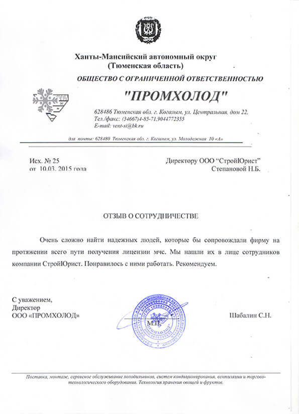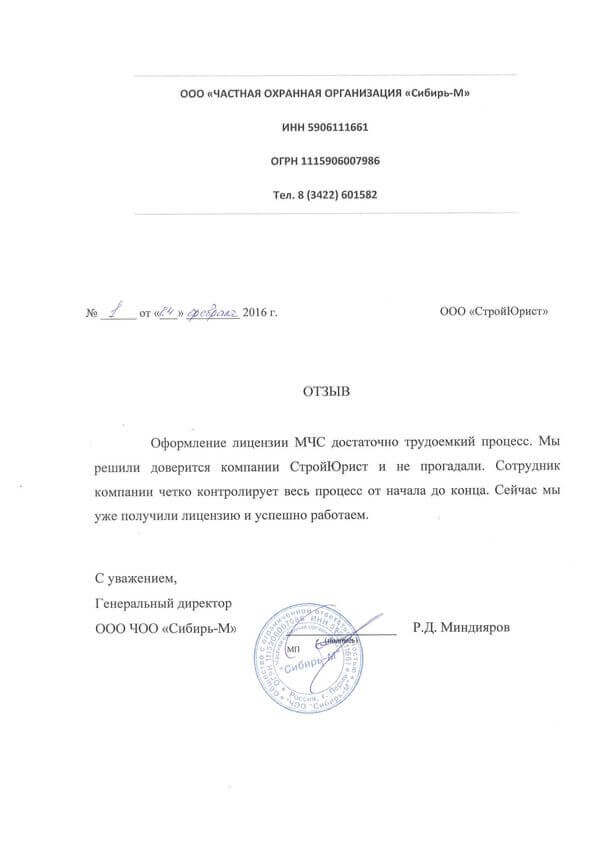 Отзывы клиентов "СтройЮрист" по лицензированию МЧС в Салехарде
