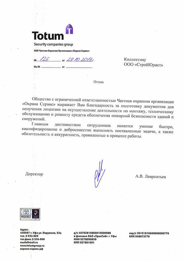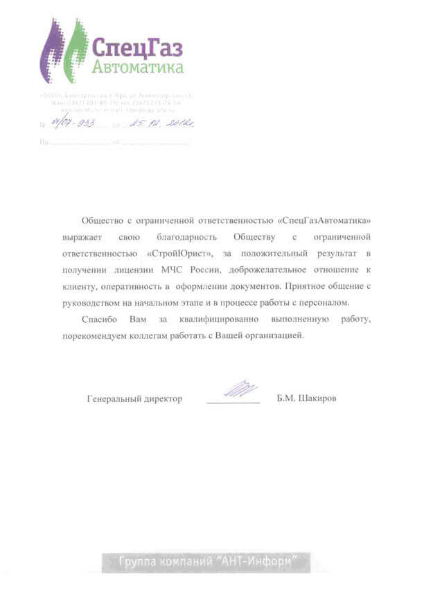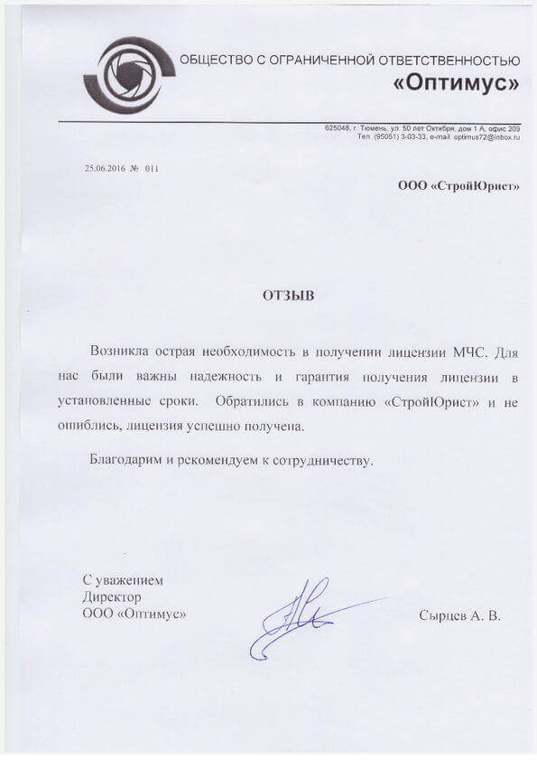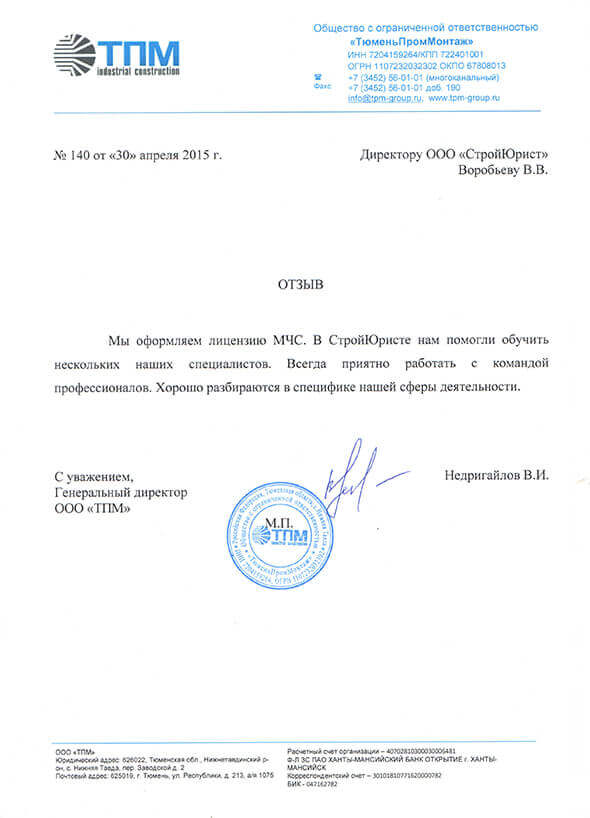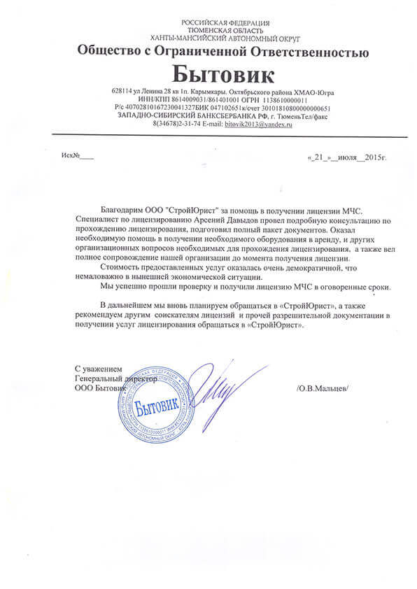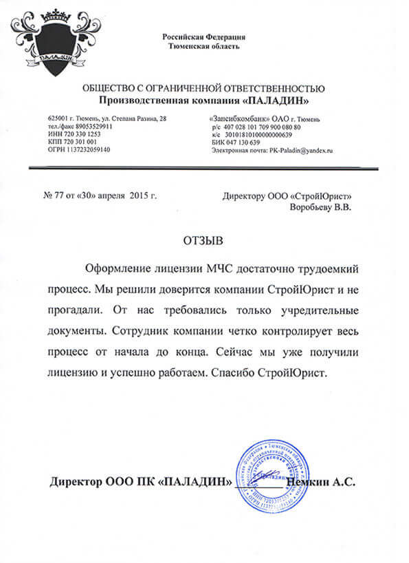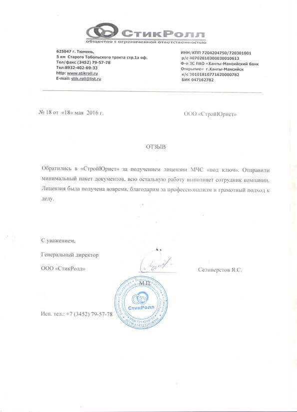 Отзывы клиентов "СтройЮрист" по лицензированию МЧС в Салехарде