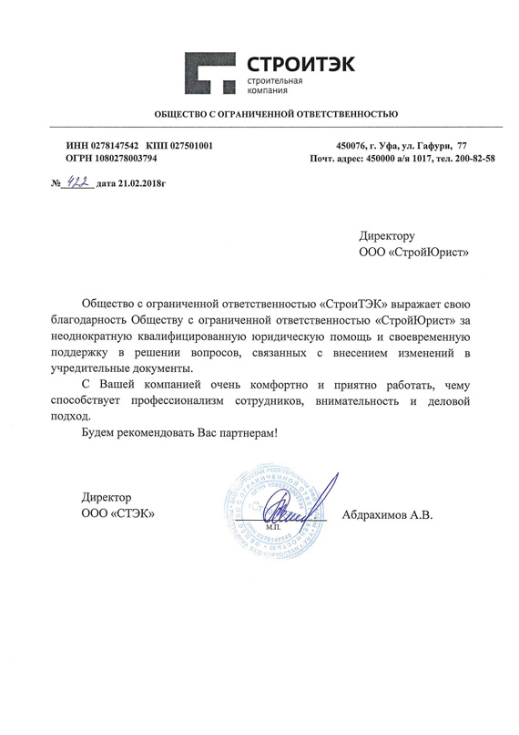 Отзывы клиентов "СтройЮрист" по регистрации фирм в Салехарде