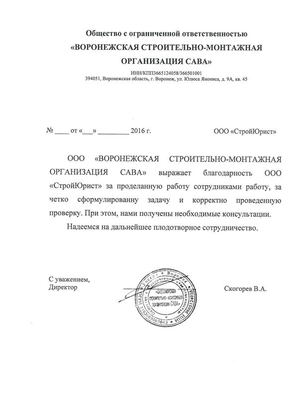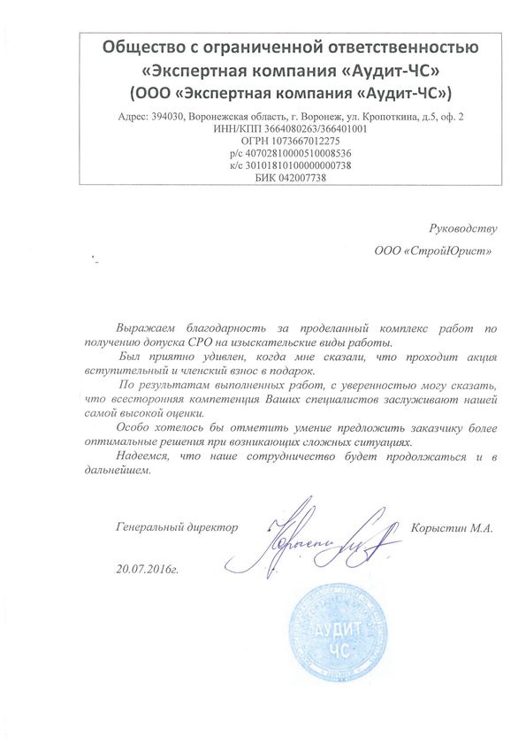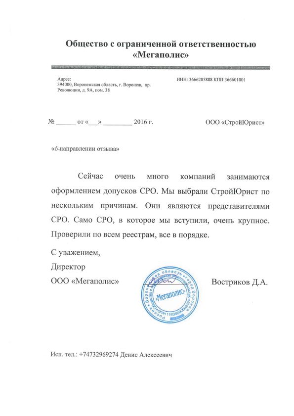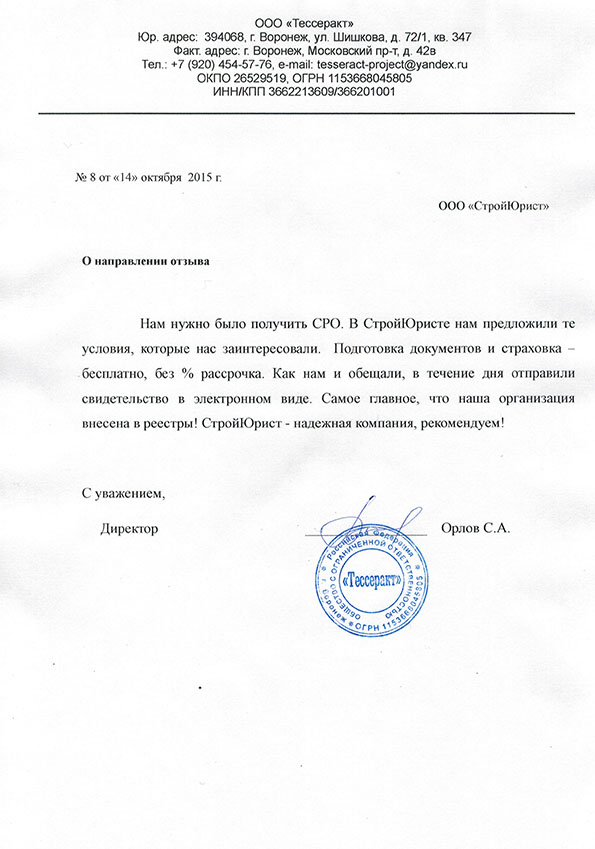 Отзывы клиентов "СтройЮрист" по вступлению в СРО в Салехарде