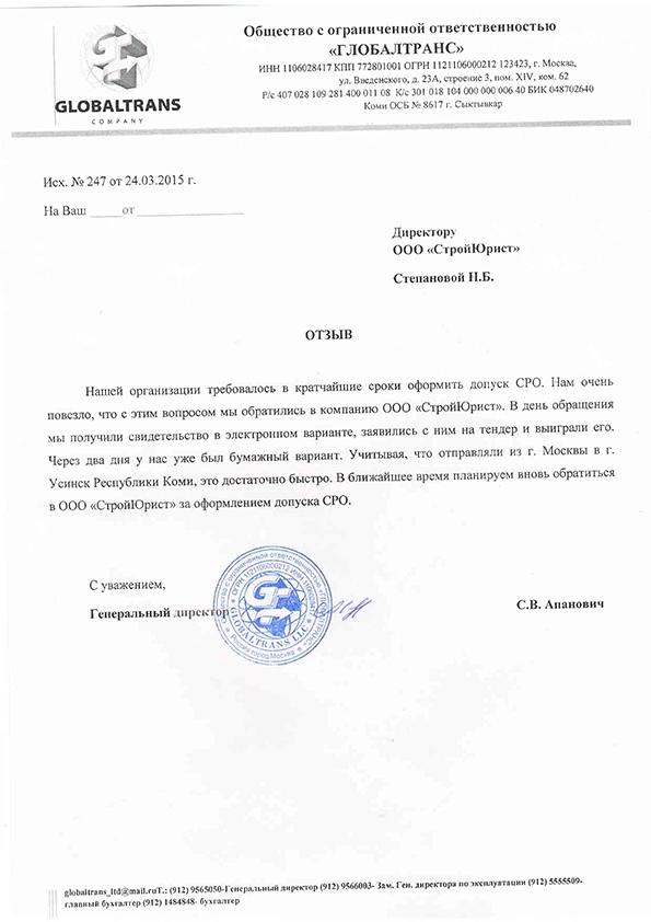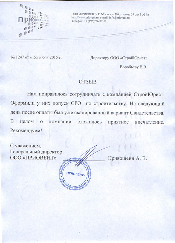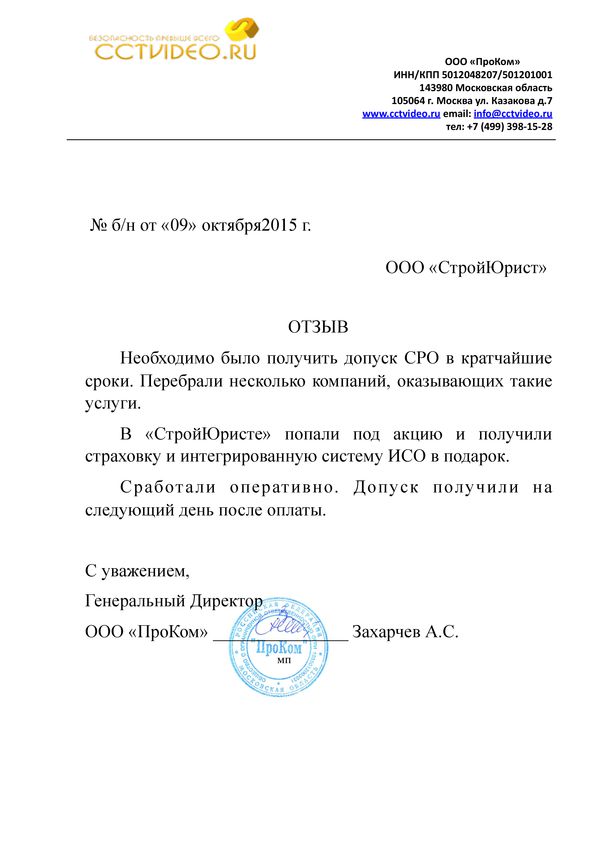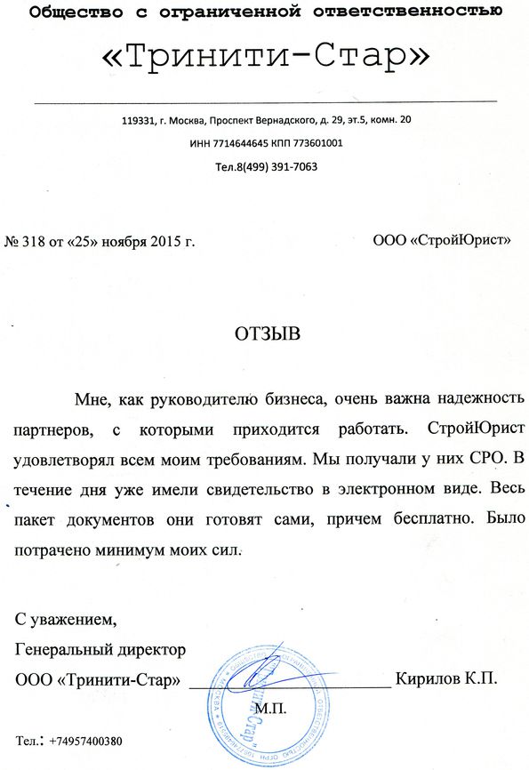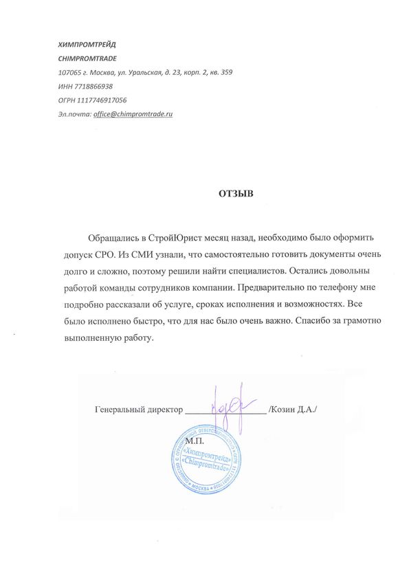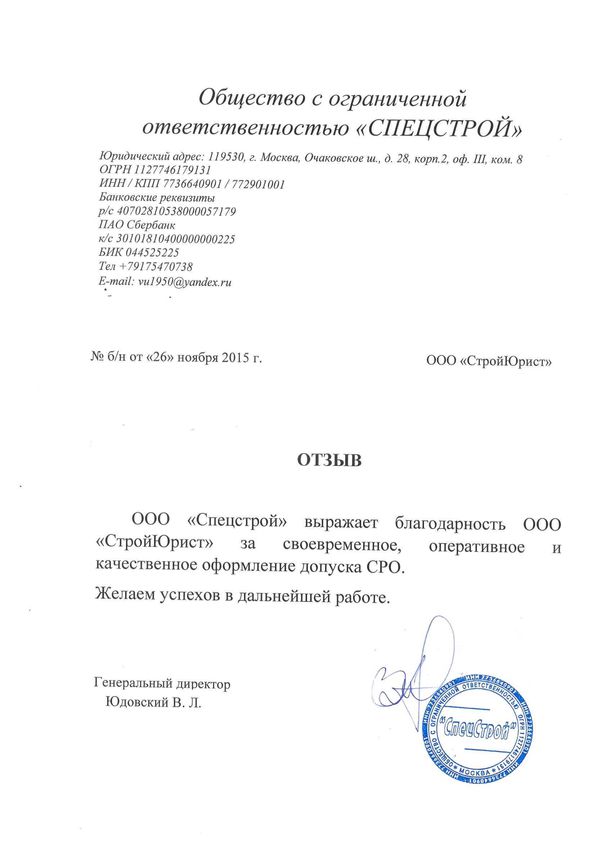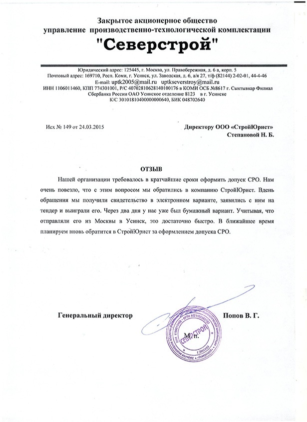 Отзывы клиентов "СтройЮрист" по вступлению в СРО в Салехарде