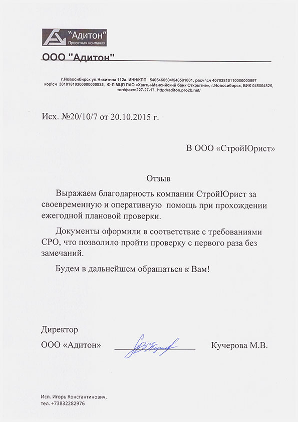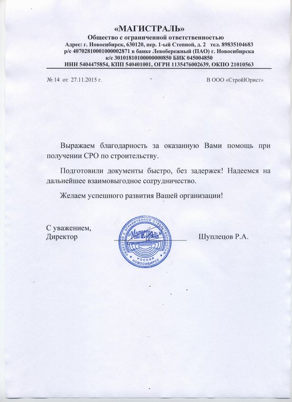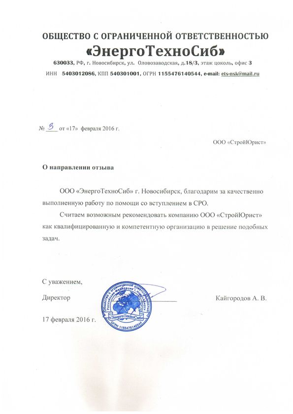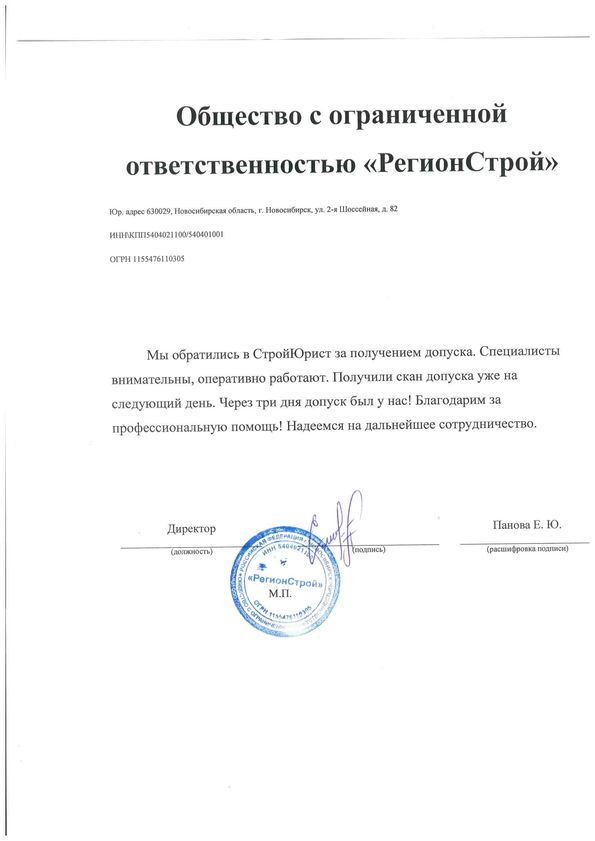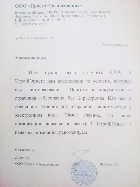 Отзывы клиентов "СтройЮрист" по вступлению в СРО в Салехарде
