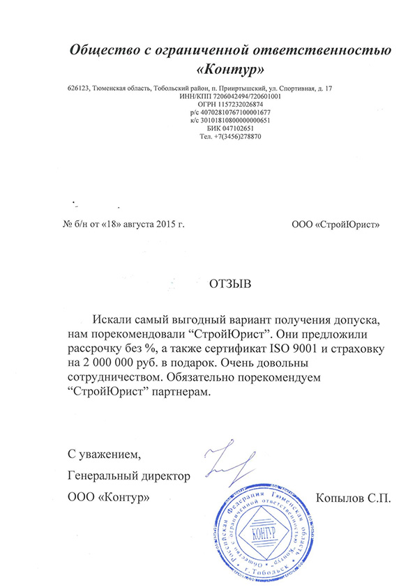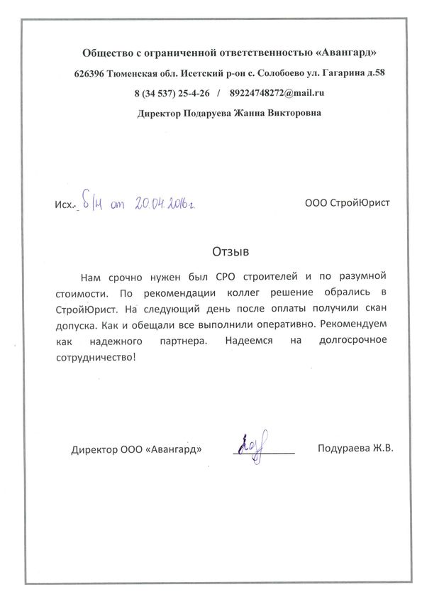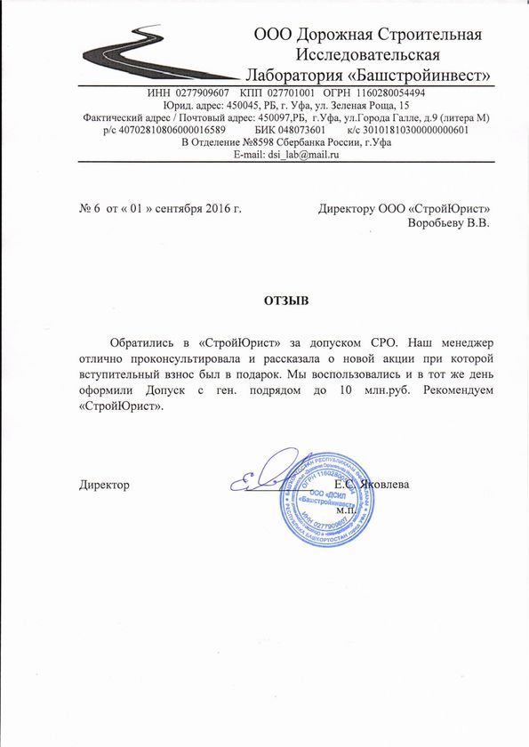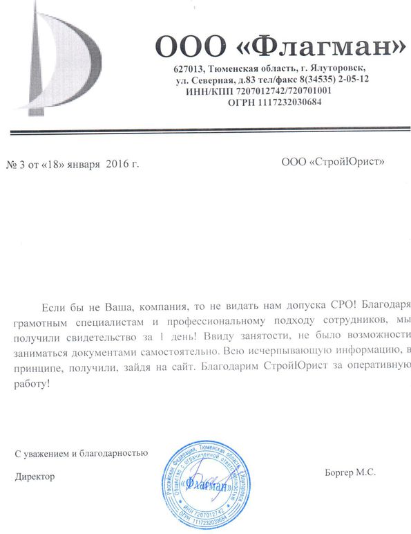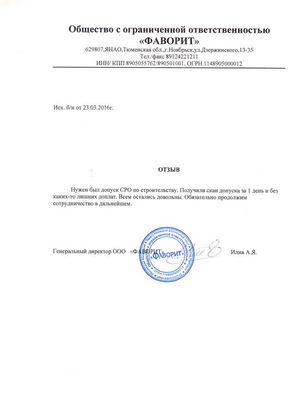 Отзывы клиентов "СтройЮрист" по вступлению в СРО в Салехарде
